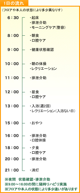 胃ろう造設、バルーン挿入している方、終末期を迎える利用者等が、安楽に過ごせるようケアします。